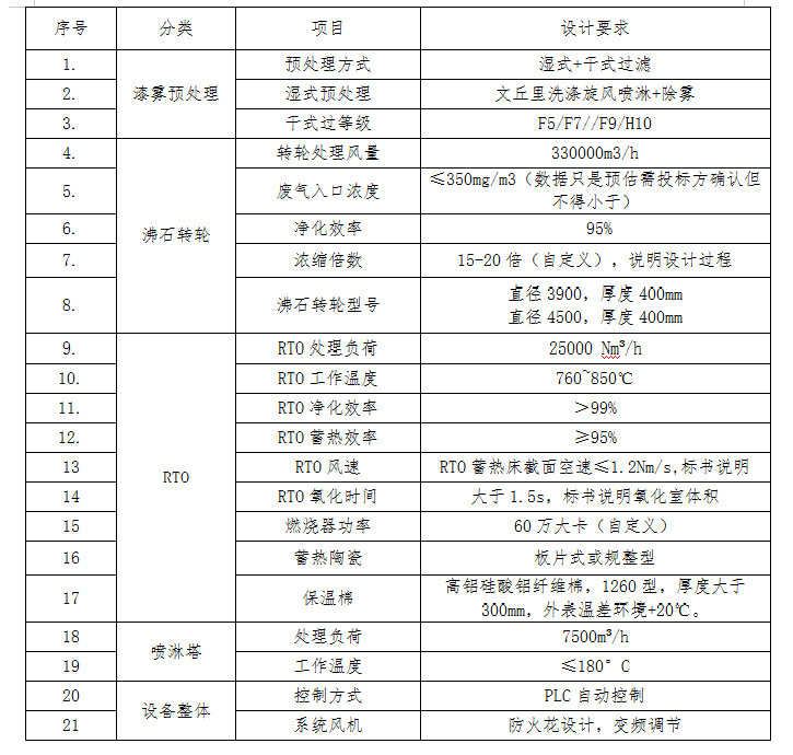1、廢氣-2套濕式預(yù)處理系統(tǒng)+2套干式過濾系統(tǒng)+2套沸石轉(zhuǎn)輪+1套RTO系統(tǒng)+1套回風(fēng)系統(tǒng)。