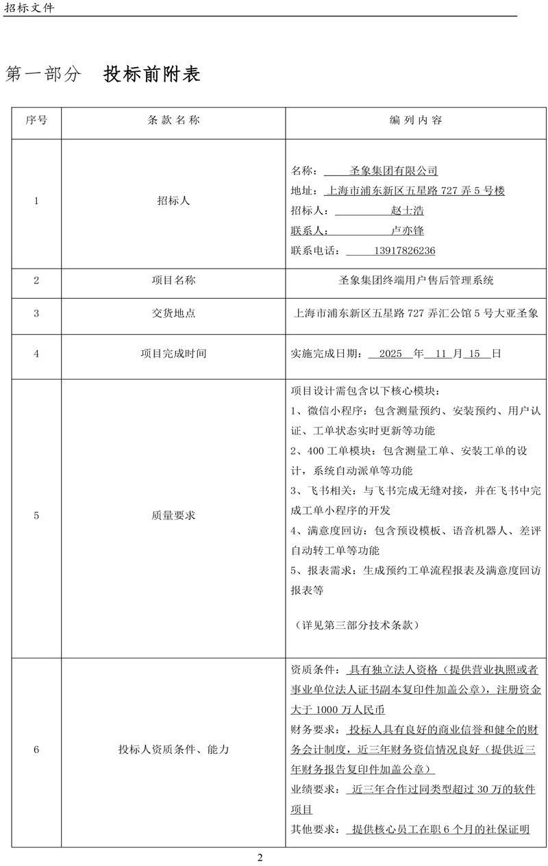 附件:圣象集團終端用戶售后管理系統招標文件-0723