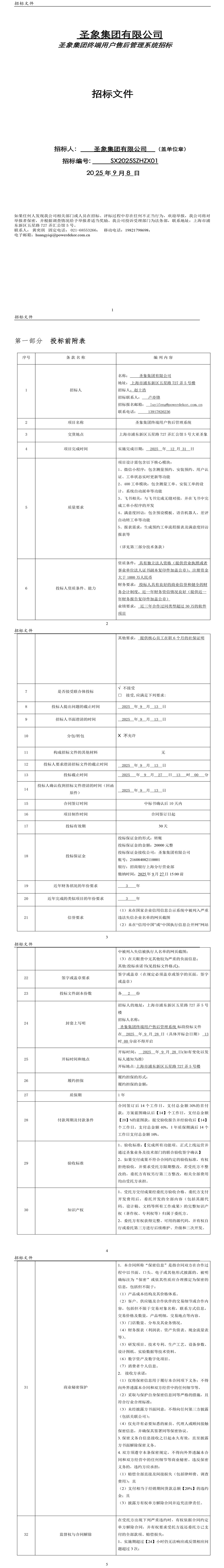 附件:招標文件-圣象集團終端用戶售后管理系統-二次發布