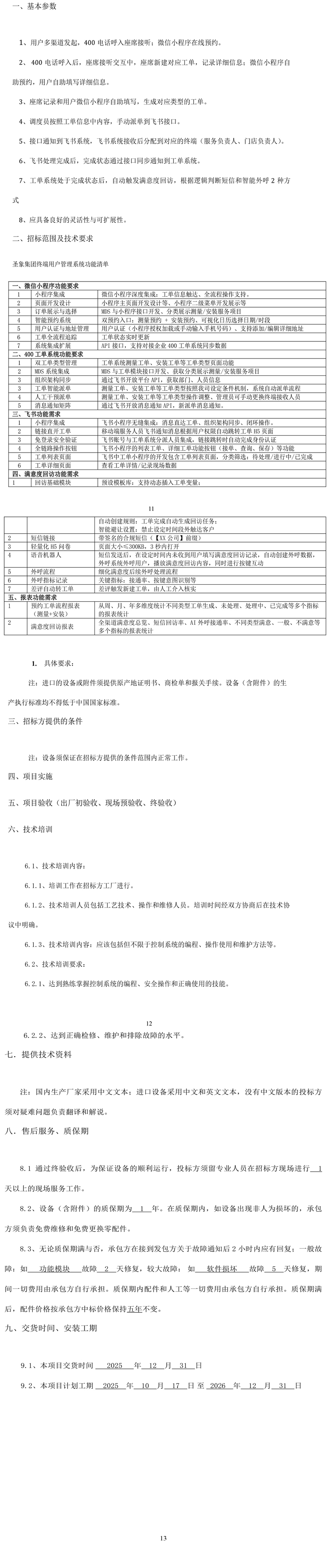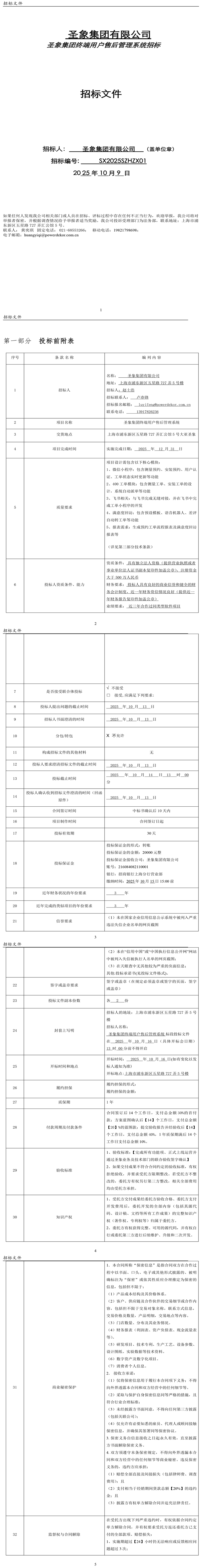 圣象集團終端用戶售后管理系統招標