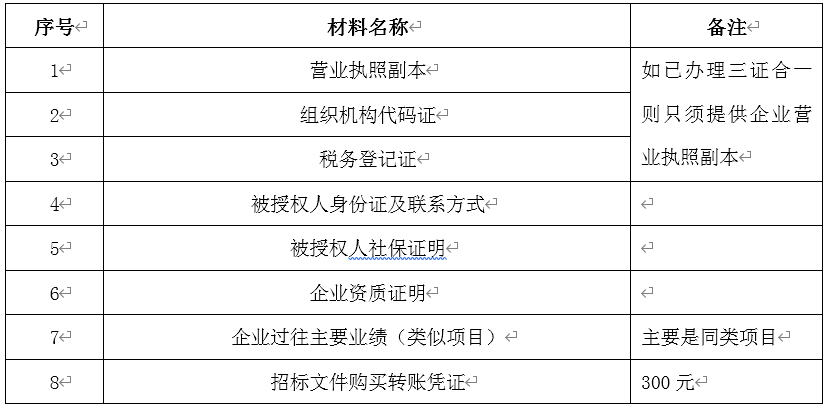 2、 凡有意向參加投標者,請在上述期間內按下表提供報名資料,相關證明文件的原件如無法提供原件則提供復印件加蓋公司公章,投標人須將上述資料的掃描件發郵件至招標聯系人處進行報名。