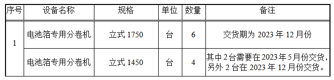 電池箔分卷機(jī)采購(gòu)項(xiàng)目
