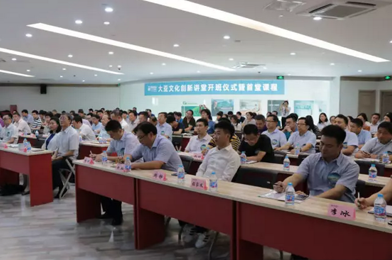 8月4日下午,大亞文化創新講堂開班儀式暨首堂課程在大亞圣象家居體驗館舉行。大亞集團董事局主席、總裁陳曉龍等集團領導、總部各職能部門負責人、各產業板塊經營班子成員等出席了本次開班儀式。開班儀式上,董事局主席、總裁陳曉龍發表重要講話,并宣布大亞文化創新講堂正式成立!