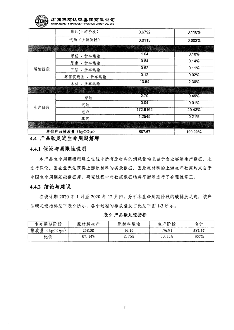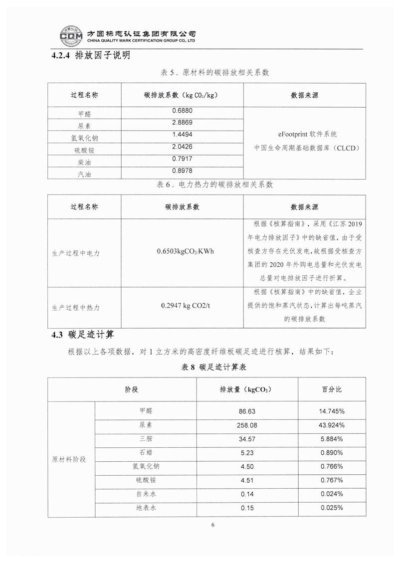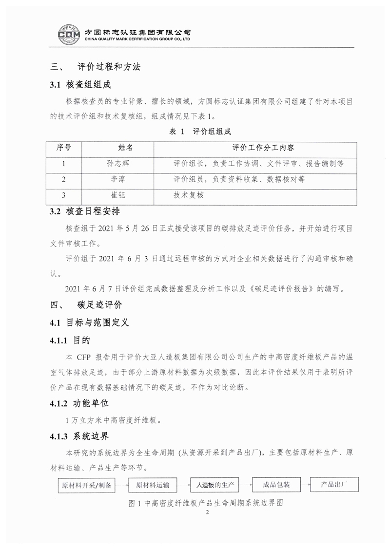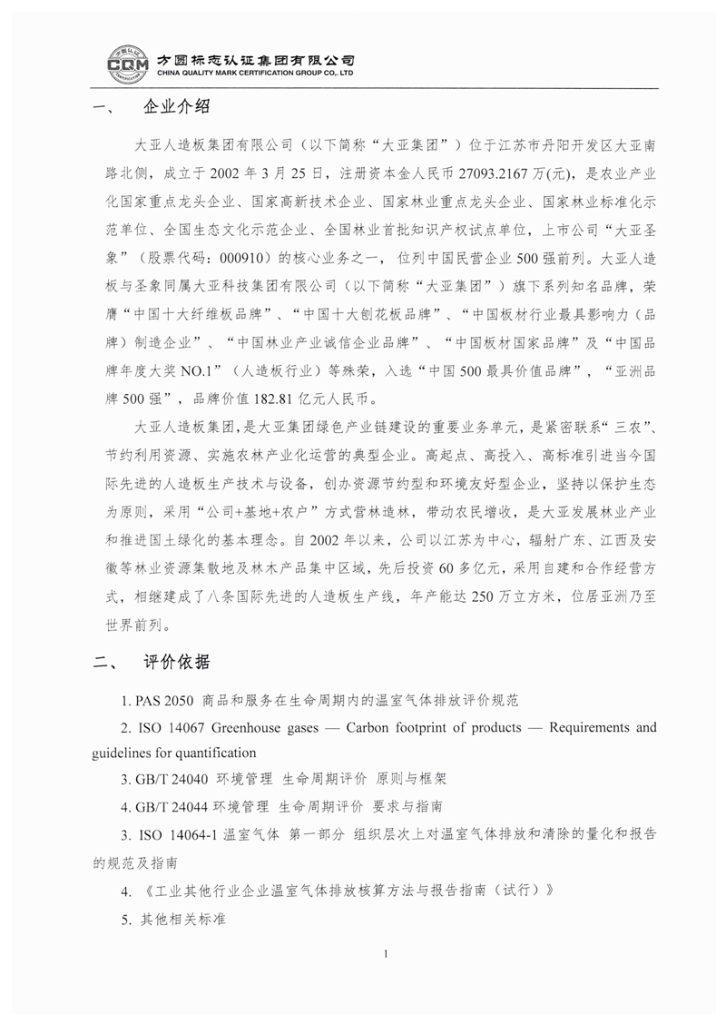 大亞人造板集團有限公司中高密度纖維板產品產品碳足跡評價報告自主公示