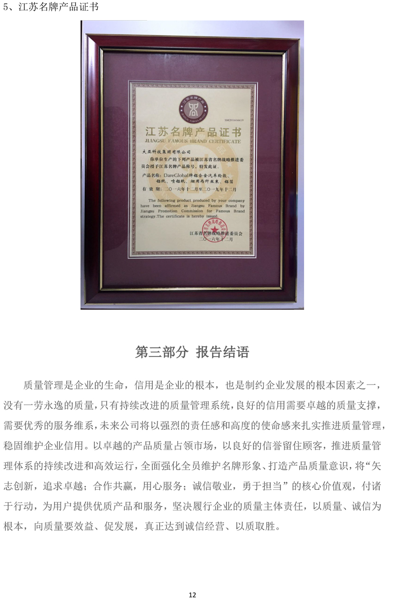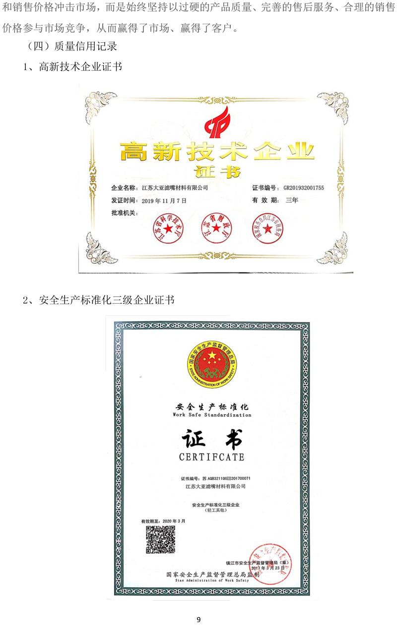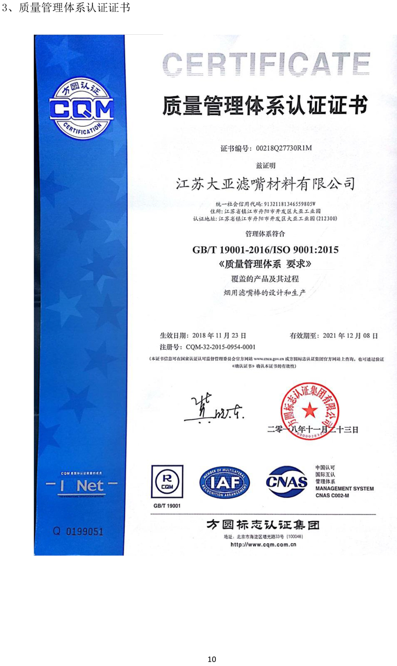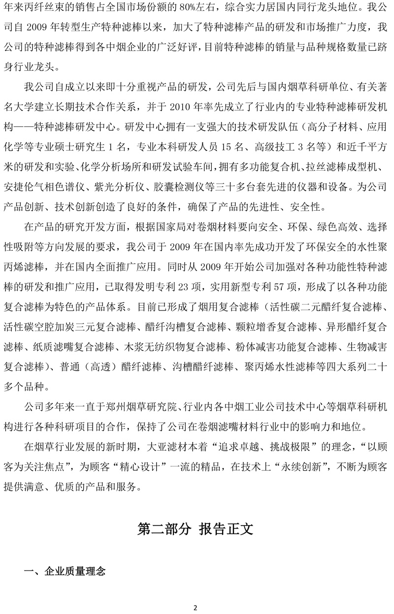 江蘇大亞濾嘴材料有限公司企業質量信用報告
